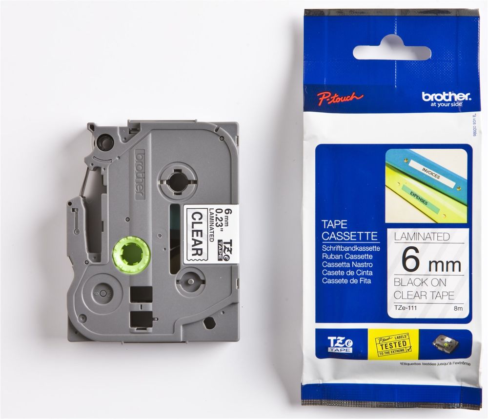 Brother TZE111 Label Tape - 6.35 mm Width - Clear - 1 Each