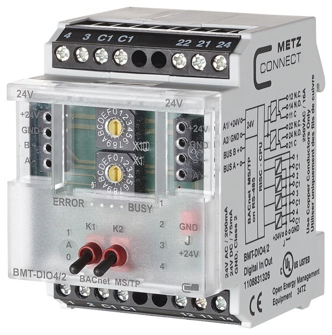 BTR 1108831326 Metz BMT-DIO4/2 BACnet MS/TP 4DI 2DO I/O module