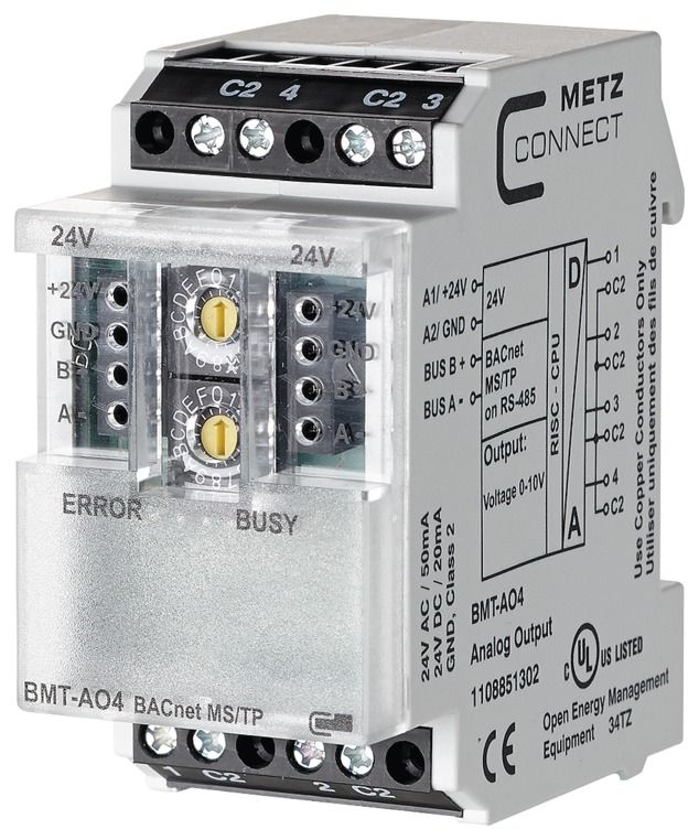 BTR 1108851302 Metz BMT-AO4 BACnet MS/TP 4AO I/O module