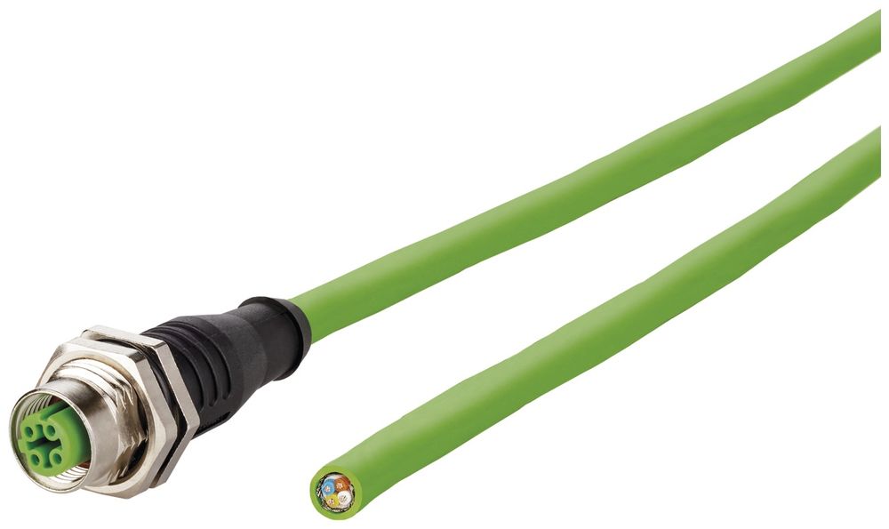 BTR 142M1D20010 Metz connection cable M12 D-code. 1m AWG 22/7 Cat.5e M12 socket straight gn