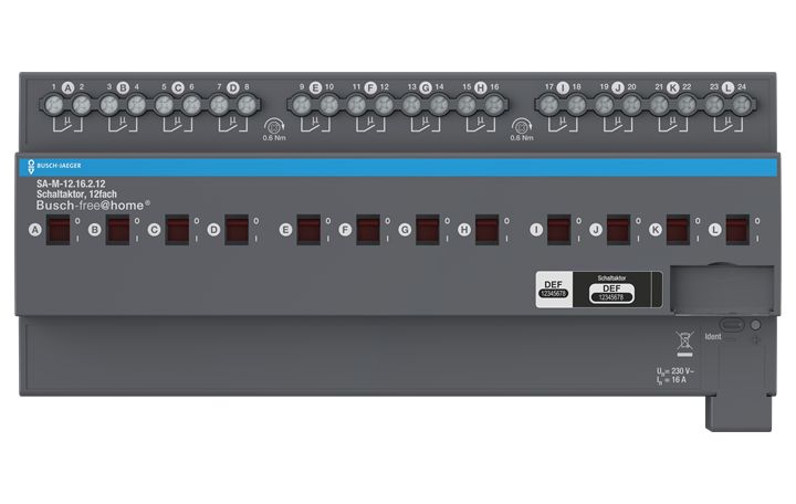 Switches electrical consumers via Busch Free@Home® with 12 independent potential-free contacts.