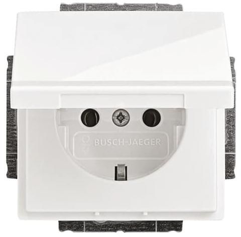 Busch Jaeger 2CKA002018A1467 Busch-Jaeger Schuko socket 20EUK-84, hinged lid DAVOS / studio white