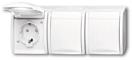 Busch Jaeger 2CKA002084A0724 Year 2300/3 EBW-54 Steckd. m.Klappdeckel, horizontal, 3-f, ocean (IP44) alpine white