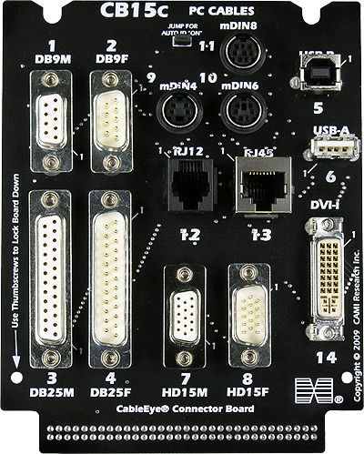 CableEye / CB15C interface board (DB9, DB25, HD15, RJ45, RJ12, mDIN)