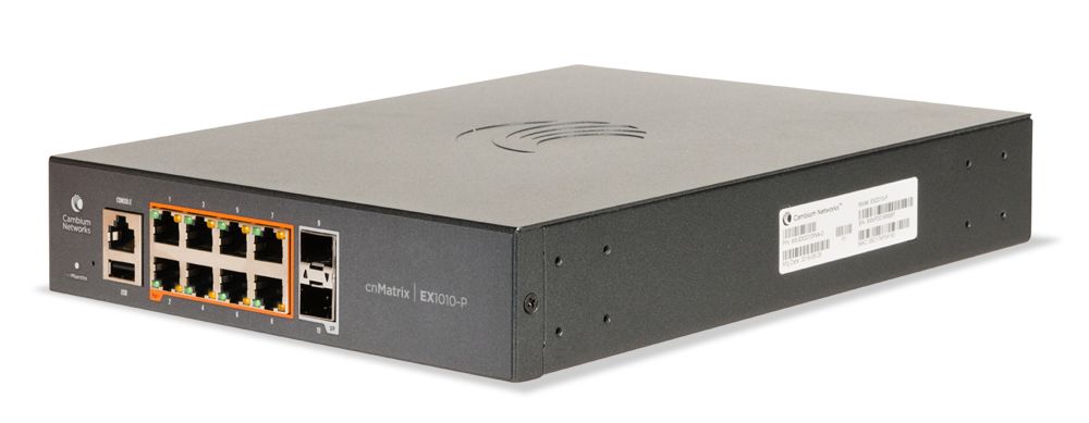 The article Cambium Networks MX-EX1010PxA-E Cambium Switch fully managed Layer2 10 Port? 8x 1GbE? PoE budget 75 watts? 8x PoE at ? 2x SFP? 10? ? Fanless, cnMaestro? EX1010-P is currently in stock