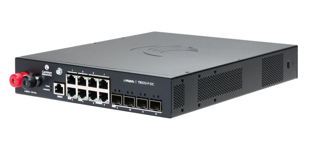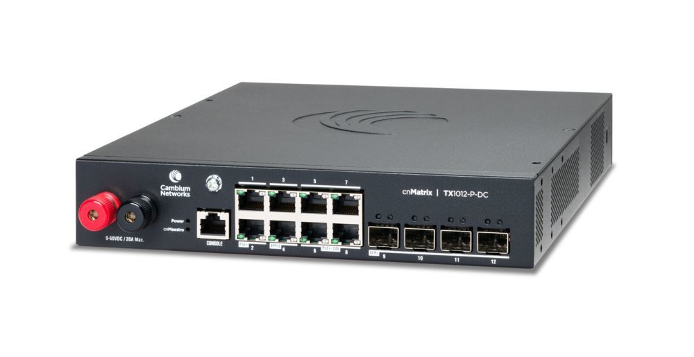 The article Cambium Networks MXTX1012GxPA20 Cambium Switch fully managed Layer3 12 Port? 8x 1GbE? PoE budget 170 watts? 8x PoE bt? 4x SFP+? 10? ? cnMaestro? TX1012-P-DC is currently in stock