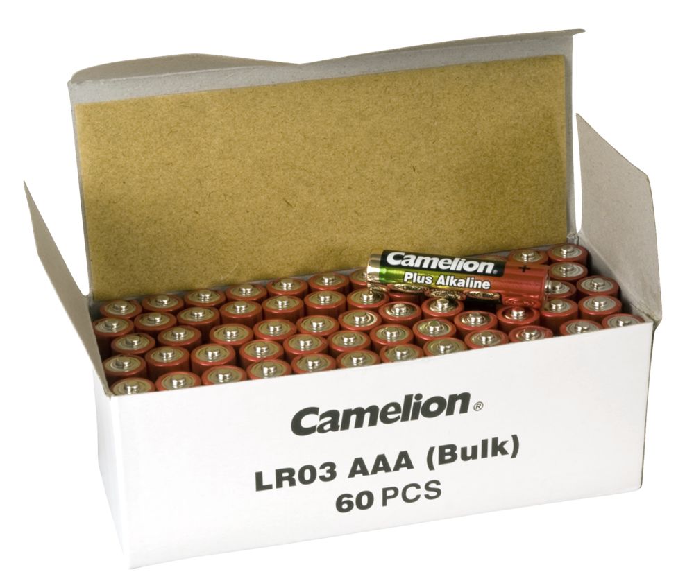 The article Micro battery CAMELION Alkaline 1.5 V, type AAA, pack of 60 is currently in stock