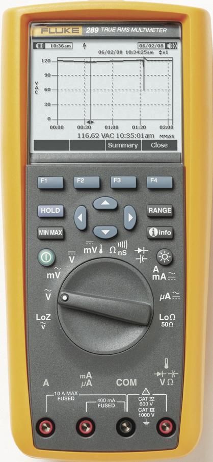 The Model 289 is the new generation of high-performance industrial logging multimeters for solving complex problems in electrical equipment, power distribution, automation and electromechanical applications. Logging and on-screen graphical display of measurement data help solve problems faster and minimize downtime. The new Fluke 289 multimeter is ideal for monitoring systems or processes while you focus on other tasks. The new Fluke Connect Mobile App and the ir3000 FC wireless interface (sold separately) enable wireless communication with your iOS and Android devices.