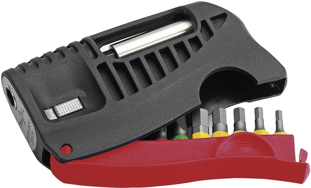 · Magnetic bit holder integrated in the housing so that it cannot be lost