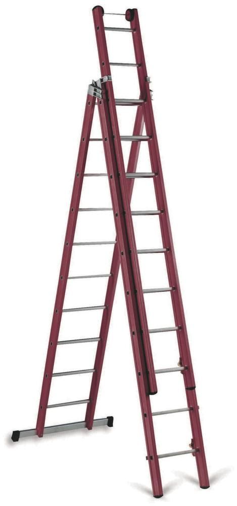 3-part rung stepladder and extension ladder, insulating up to 1000 V AC/1500 V DC. Combined three-part rung ladder that can be used both as a stepladder and as an extension ladder (leaning ladder). When used as a stepladder, the third upper part of the ladder only serves as a safety bridge. Optimum stability thanks to the floor crossbar, extension ladder height adjustable from rung to rung by hand, 2 wall rollers at the top of the ladder, locking and opening mechanism made of aluminum, high-strength tensioning belts to prevent the stepladder from opening accidentally, hollow GRP stiles in H-profile (90x32 mm, with 8 rungs 70x32 mm), aluminum rungs with the dimensions: rung cross-section 27x27 mm, rung spacing 280 mm, tested in accordance with EN 131 (except 3x14 rungs!). Number of rungs: 3x8 mm, stepladder height: 2.30 m, extension ladder height (max.): 5.77, weight: 21 kg. Plastic ladder with tested, extremely age-resistant fiberglass stiles that have an electrically insulating effect, especially for professional users who work near cables, connections or other live equipment. Light and handy thanks to the special design of the GRP stiles (hollow or C-profile) and aluminum rungs and steps, rungs and steps permanently double-flanged to the stiles, rung spacing 280 mm: load capacity 150 kg, non-slip stand thanks to rubber ladder shoes, including detailed operating, assembly and safety instructions. Ladders comply with European standard EN 131 and electrical tests according to DIN 53 481, 53 482 and 53 483 by independent testing institute CESI, 5-year durability guarantee.