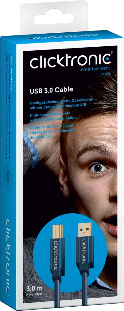 The article Clicktronic 70093 USB 3.0 cable - high-speed data cable with the connector combination A / B is currently in stock