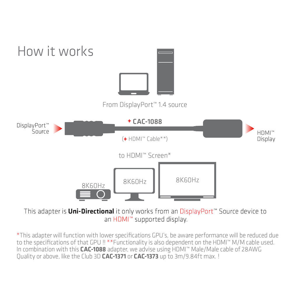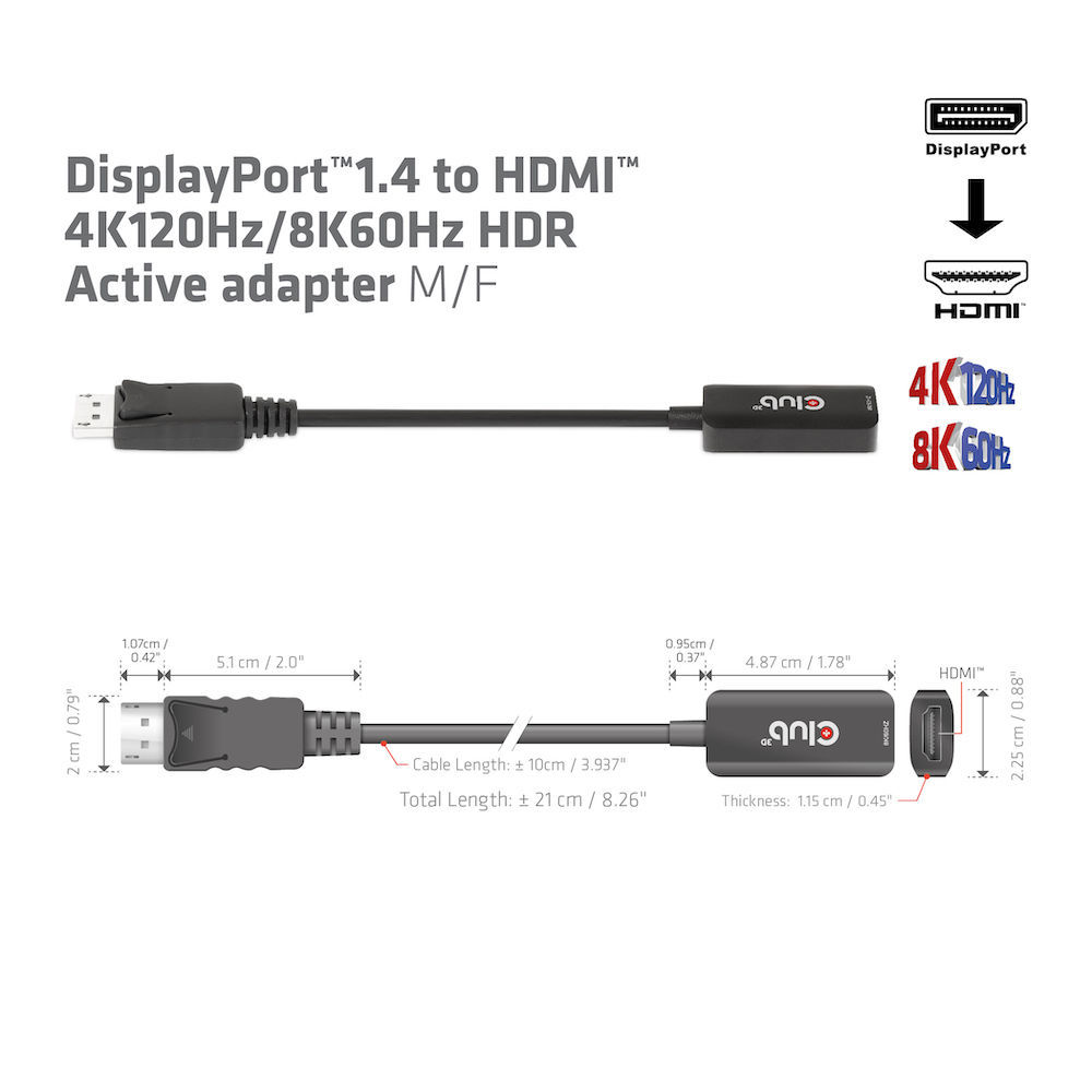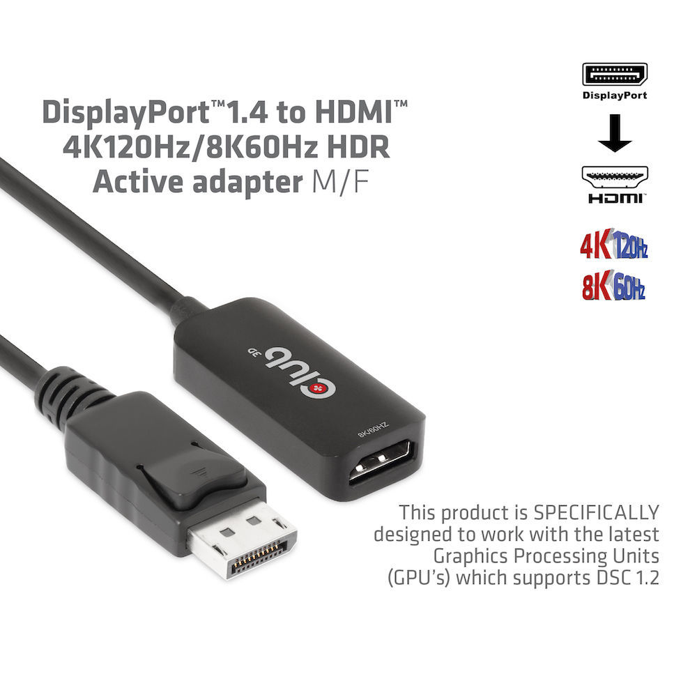 Adapter DisplayPort 1.4 => HDMI *Club 3D* 4K120Hz/8K60Hz HDR active