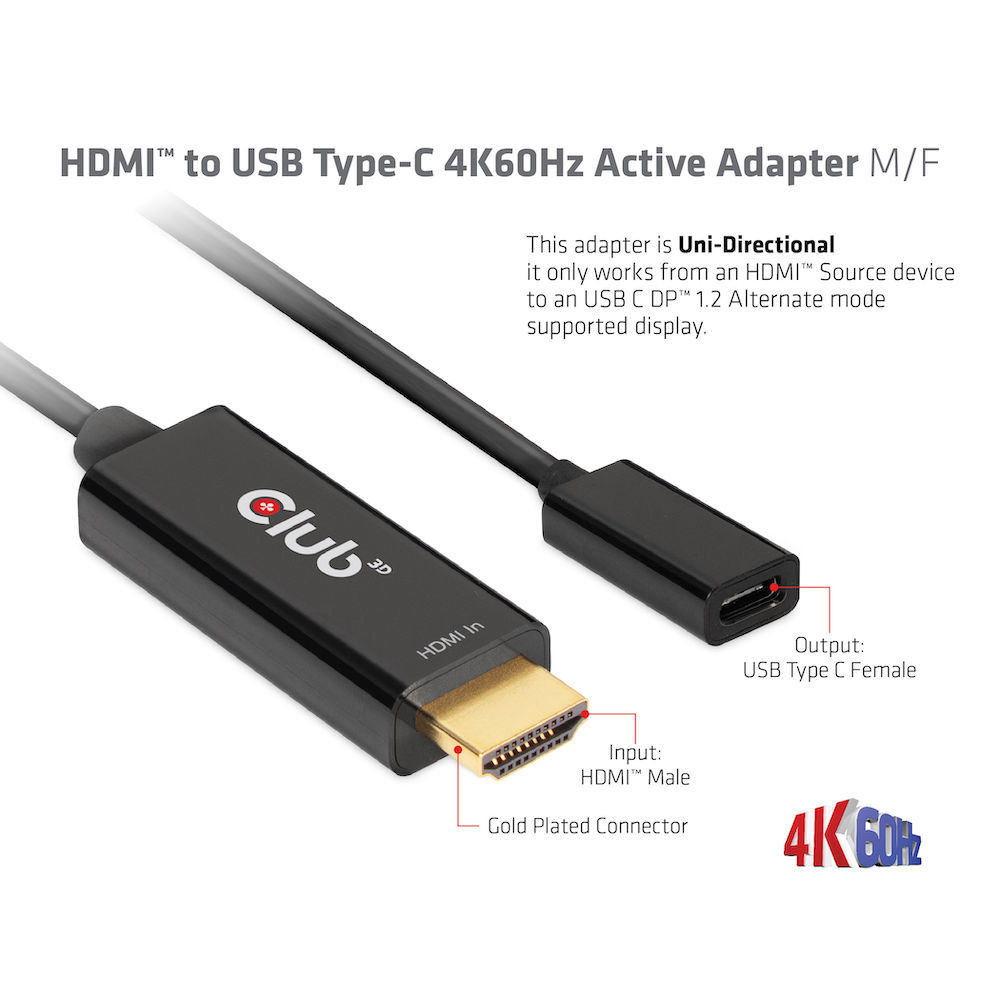 Adapter HDMI => USB C *Club3D* 4K60Hz active