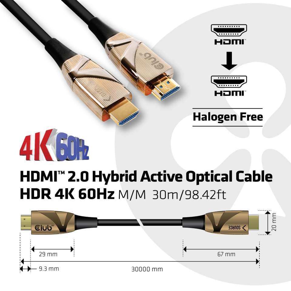 Cable video HDMI 2.0 HDR 4K60Hz ST/ST 30.0m *Club3D* active optical