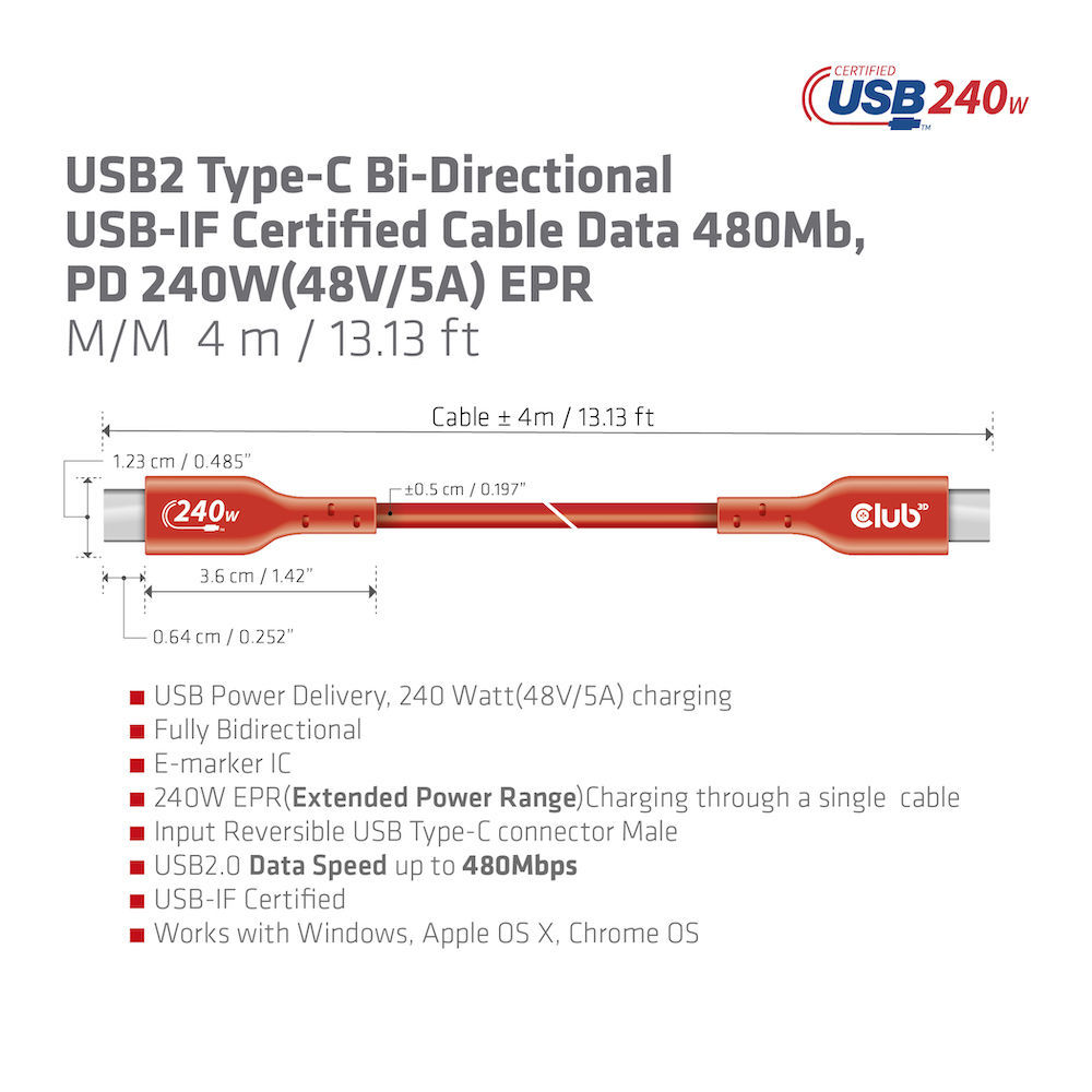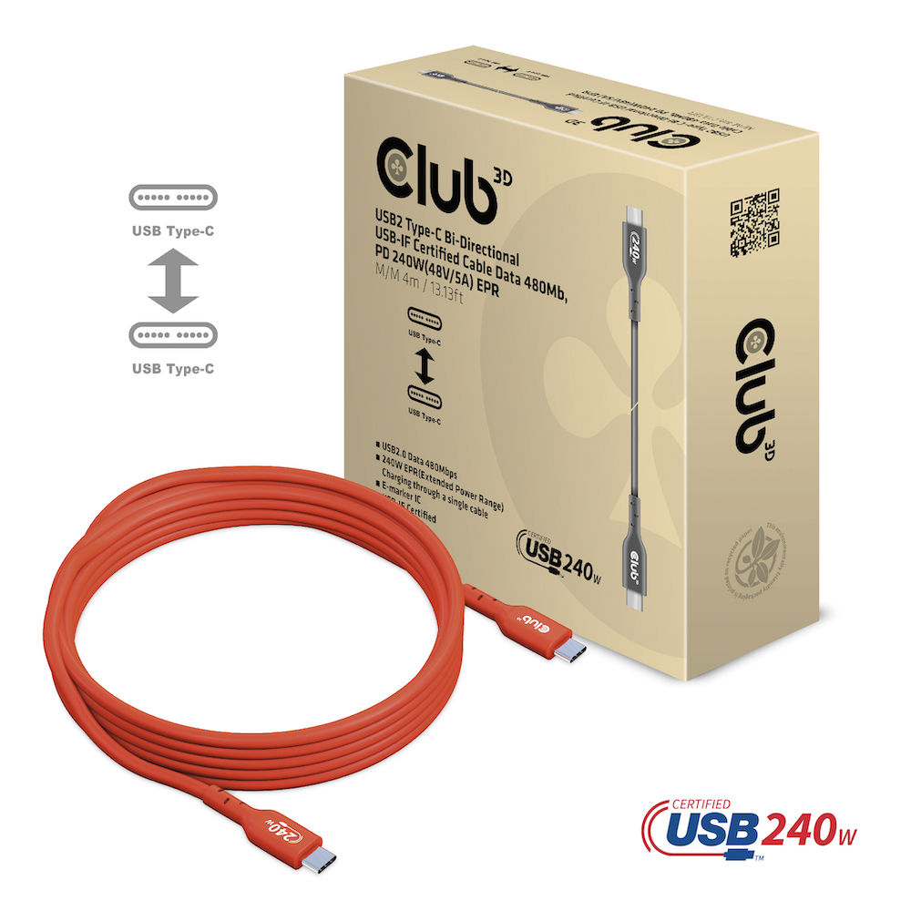 Cable USB 2.0 C (St) => C (St) 4.0m *Club 3D* 240W