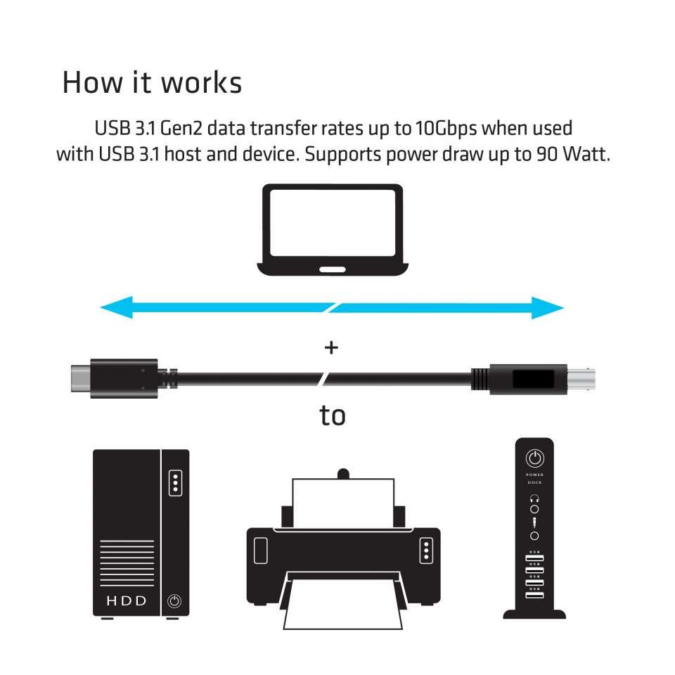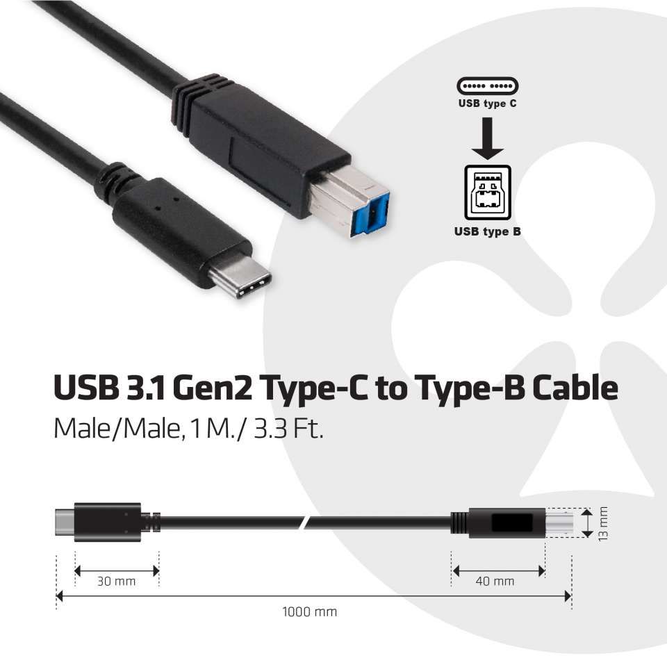 Cable USB 3.1 C (St) => B (St) 1.0m *Club 3D* 10Gbps PowerDelivery