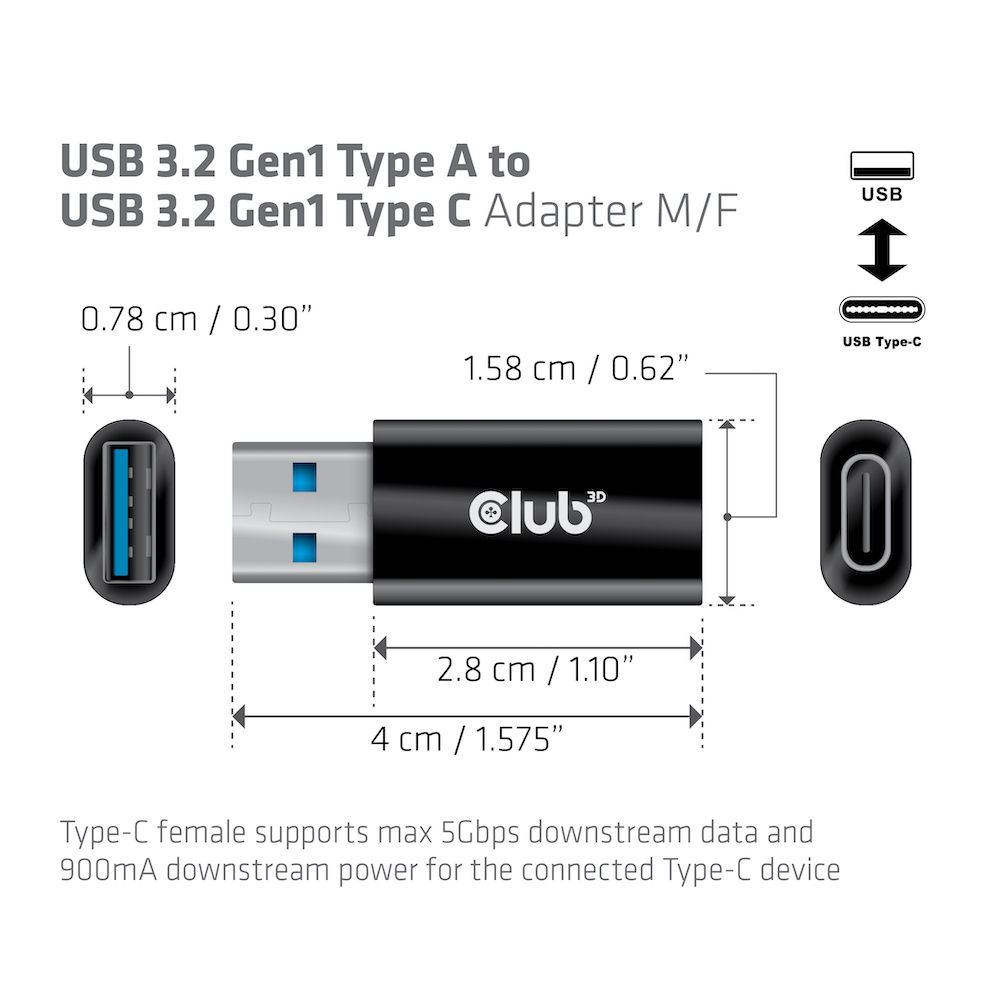 Adapter USB-A 3.2 => USB-C 3.2 *Club3D*