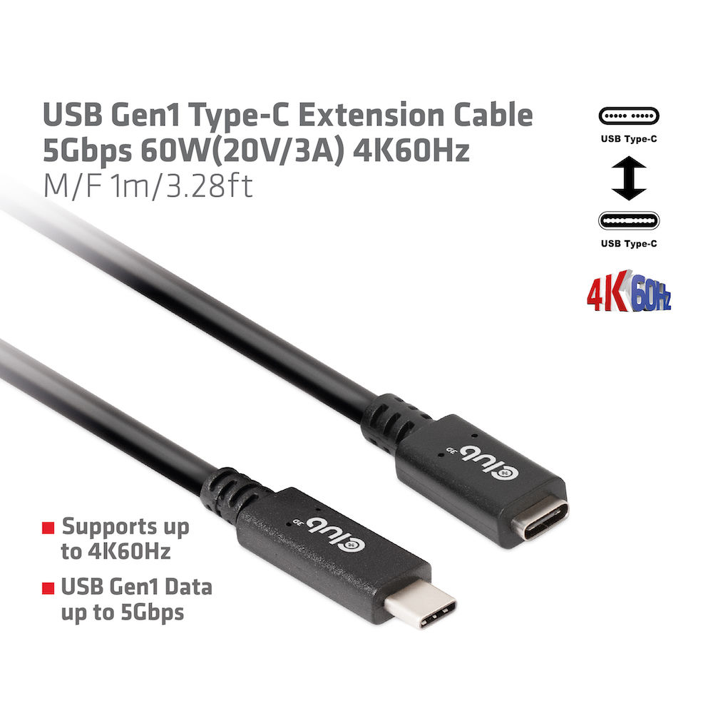Cable USB 3.1 C (St) => C (Bu) 1.0m *Club 3D* 5Gbps