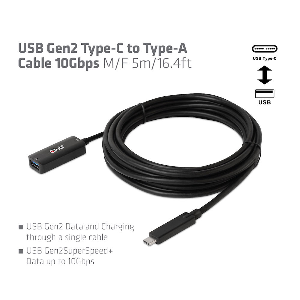 Cable USB 3.2 C (St) => A (Bu) 5.0m *Club 3D* 10Gbps