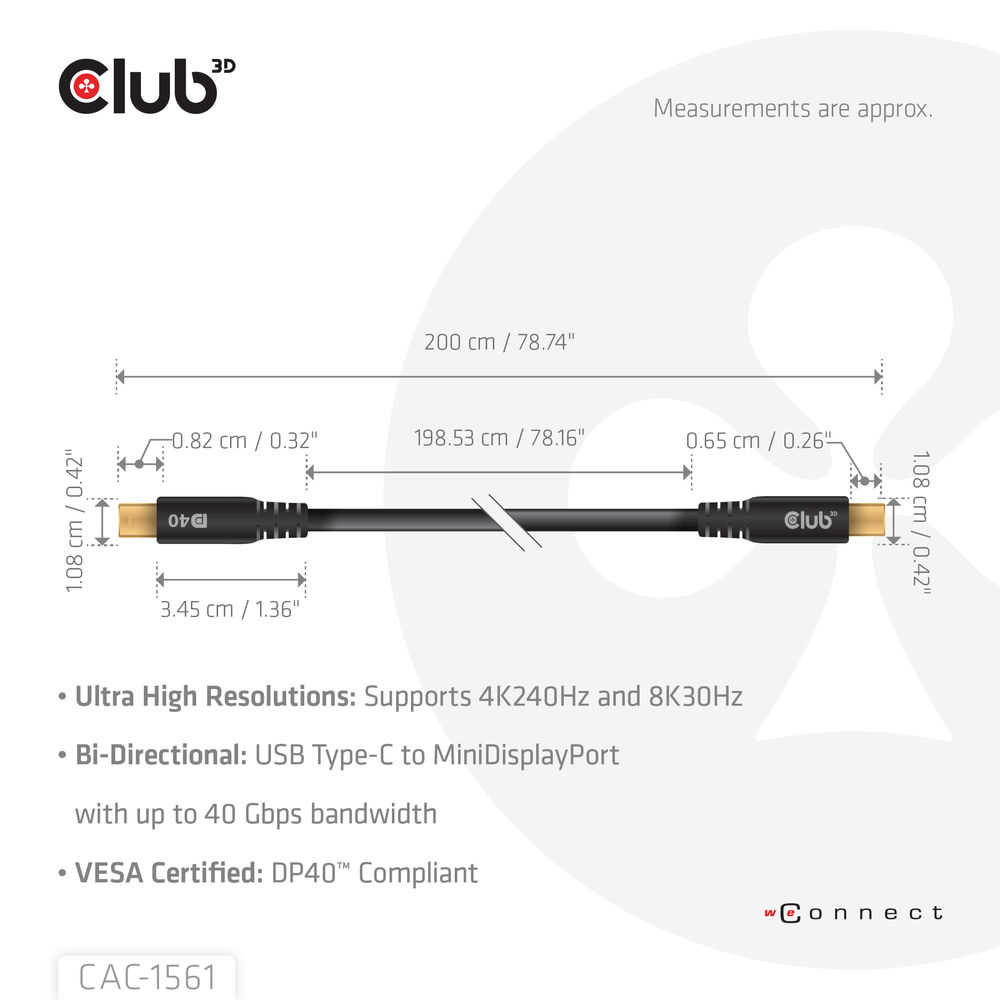 Kabel USB Typ C (St) => DisplayPort Mini 2.1 (St) 2,0m *Club 3D*
