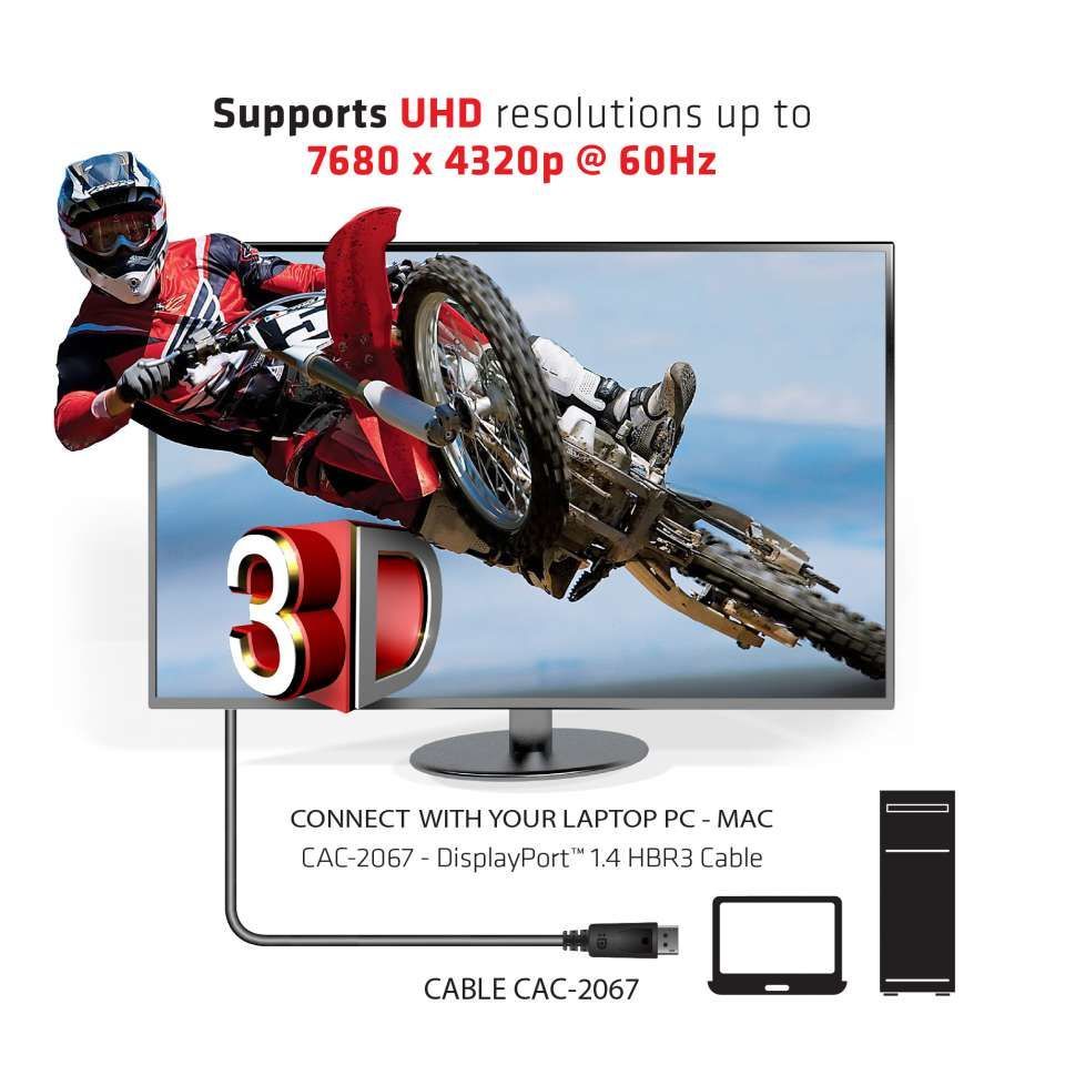 We offer you Club 3d CAC-2067 Cable Video DisplayPort 1.4 HBR3 ST/ST 1.0m 28AWG *Club3D* always at the best possible price. We can give you a discount of 2% on Club 3d CAC-2067 Cable Video DisplayPort 1.4 HBR3 ST/ST 1.0m 28AWG *Club3D* if you choose payment in advance on ordering.