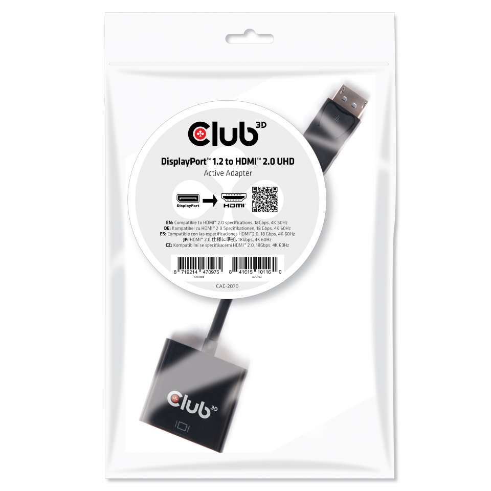 Adapter DisplayPort 1.2 => HDMI 2.0 *Club 3D* 4K60Hz aktiv