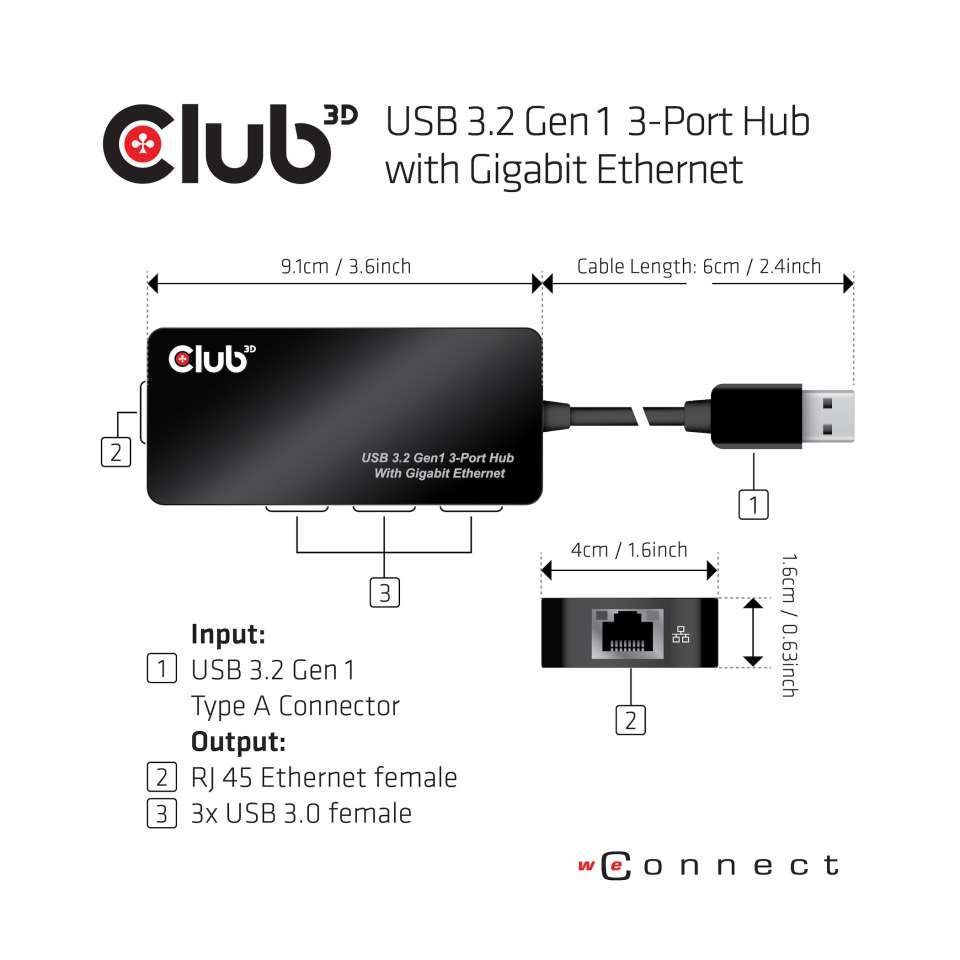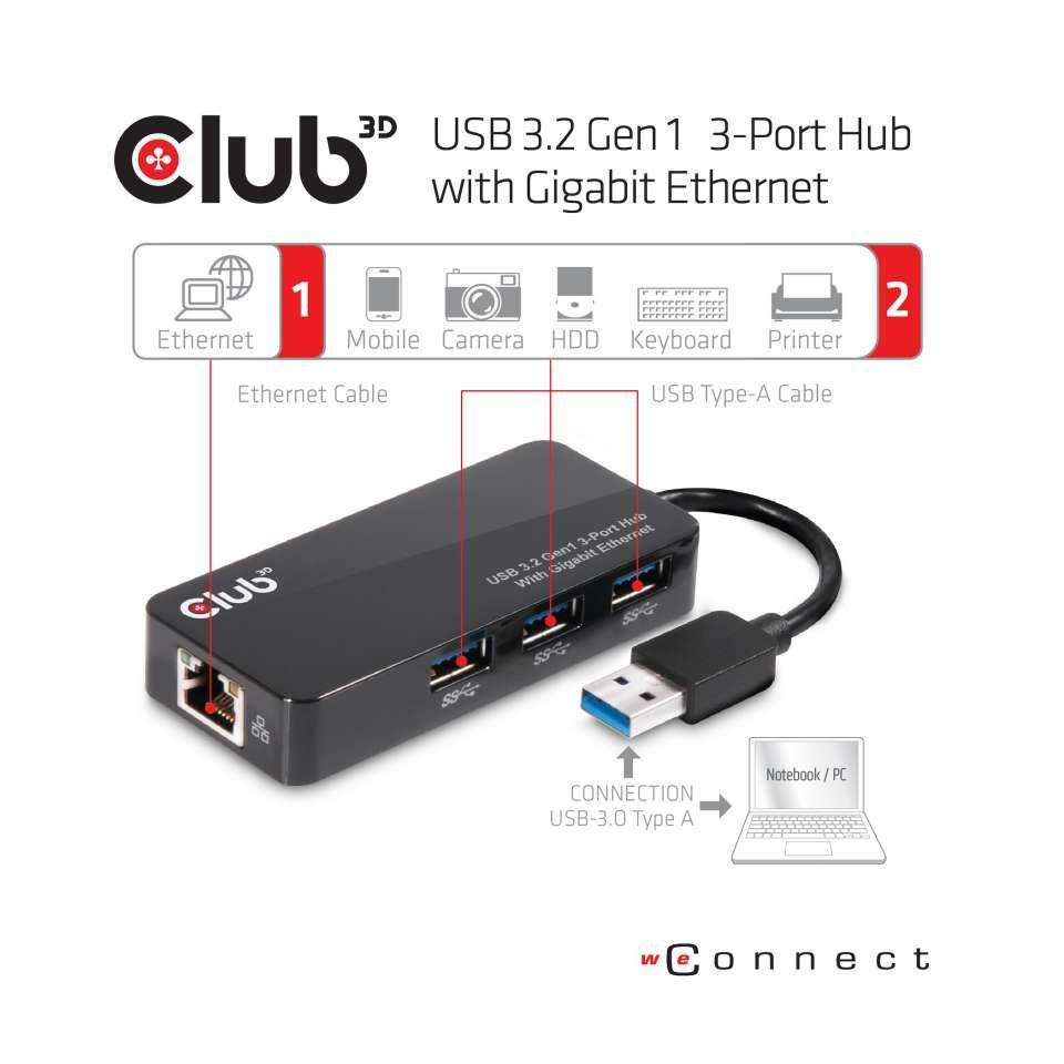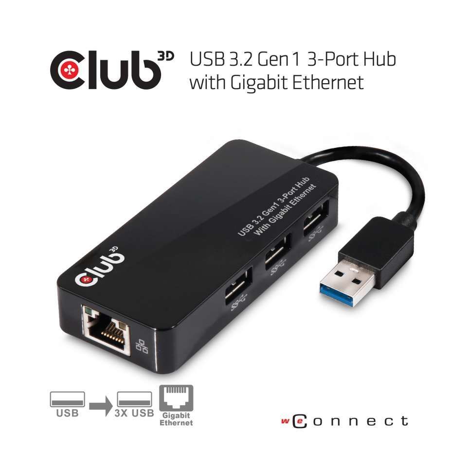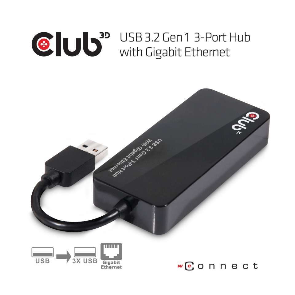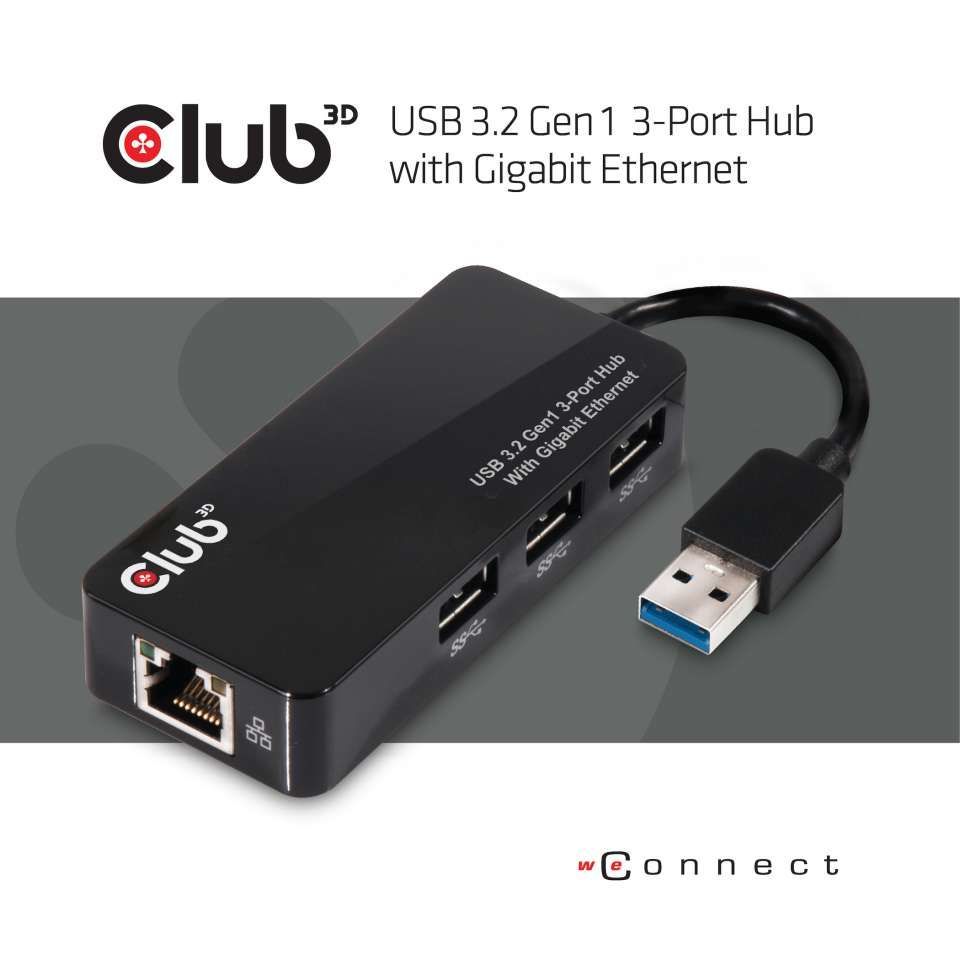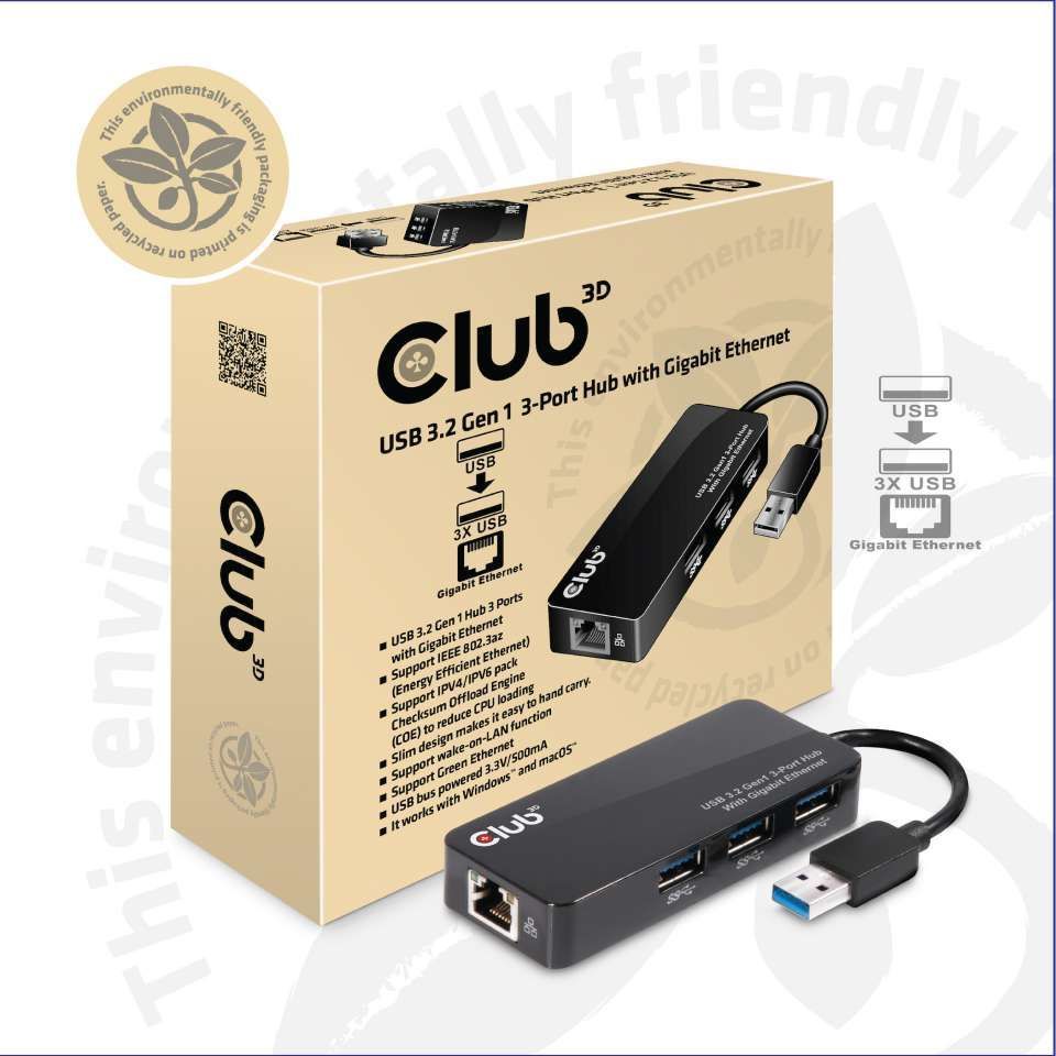 USB Hub 3.0 - 3-Port Hub with Gigabit Ethernet *Club 3D*