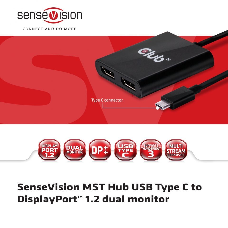 Club 3D SenseVision Multi Stream Transport Hub USB 3.1 Type C => DisplayPort 1.2 Dual Monitor