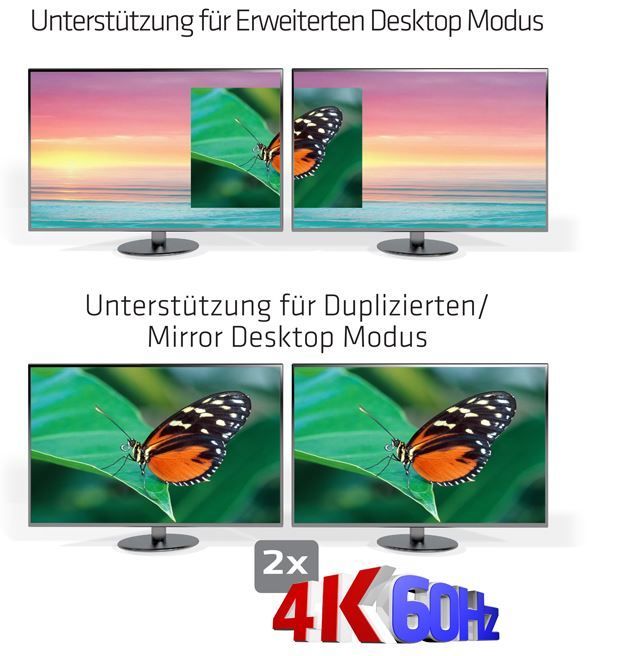 - Supported max. output resolution for dual screen setup: up to 4096x2160p@60Hz