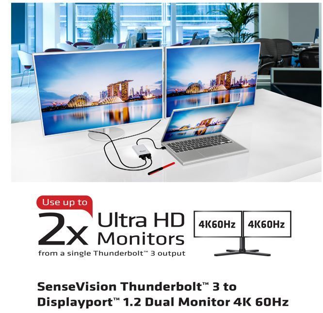 Adapter Thunderbolt 3 => Displayport 1.2 *Club3D* Dual Monitor 4K 60Hz