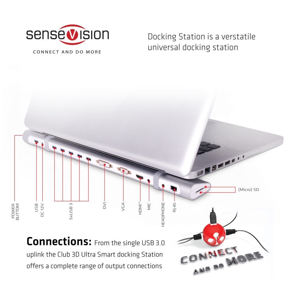 Club 3D SenseVision Dock Station - USB3.0 Ultra Smart Docking Station *brushed aluminum*