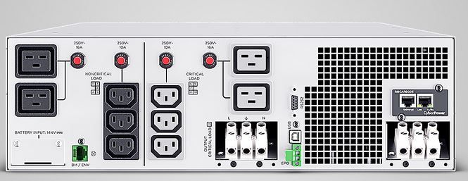 The article CyberPower USV, OL Tower/48,3 cm ( 19 inch )-Serie, 6000VA/6000W, 3HE, On-Line, LCD, USB/RS232, ext. Runtime inkl. RMCARD205, 1-phasig is currently