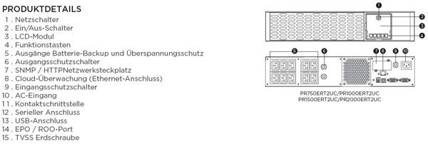 The article CyberPower UPS, PR Tower/48,3 cm ( 19 inch ) PRIII series, 1000VA/1000W, 2U, line-interactive, pure sine wave, LCD, USB/RS232/CLOUD interface is currently in stock