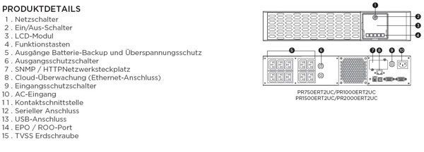 The article CyberPower UPS, PR Tower/48,3 cm ( 19 inch ) PRIII series, 1500VA/1500W, 2U, line-interactive, pure sine wave, LCD, USB/RS232/CLOUD interface is currently in stock