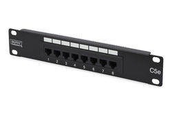 - DIGITUS CAT 5e, Class D patch panel, 8 port, unshielded, black