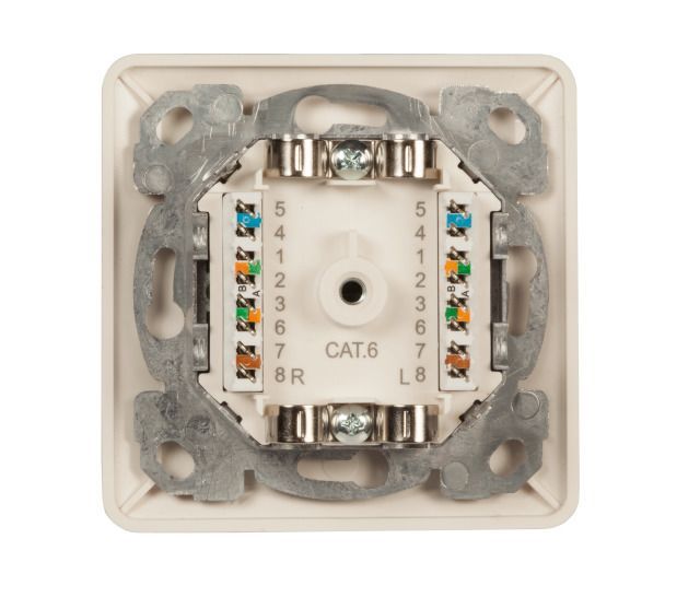Dosen TP,UP, 2-fach, CAT6, 250Mhz, Reinweiss, Kabeleingang rechts/links,