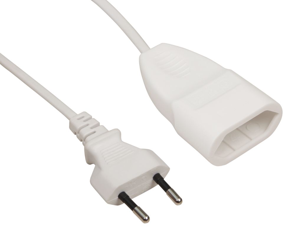 McPower power cable extension, 2m, Euro plug - Euro coupling, white
