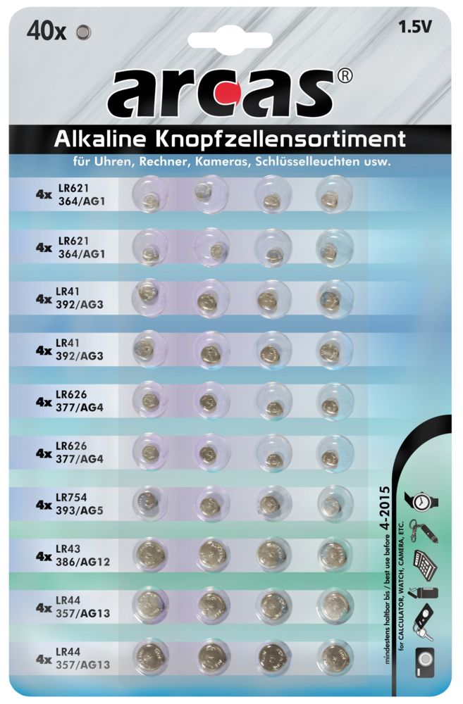 Alkaline button cell range, 40 pieces