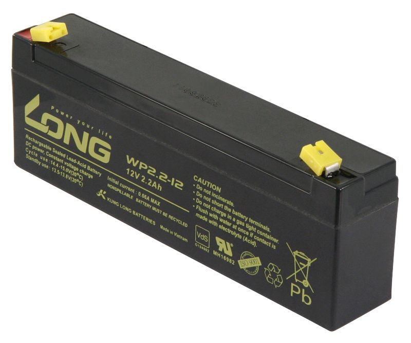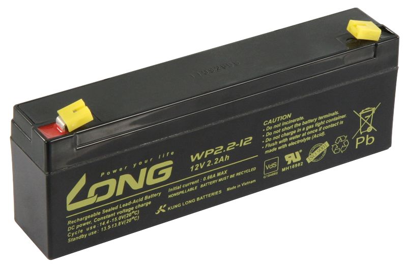 The article Lead battery KUNG LONG ''WP2.2-30,5 cm ( 12 inch ) 12V/2.2Ah, VdS, 178x34x60mm, 1.06kg is currently in stock