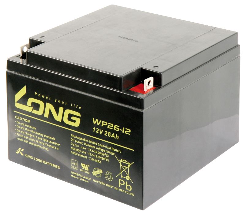 Lead battery KUNG LONG ''WP26-30,5 cm ( 12 inch ) 12V/26Ah, VdS, 166x175x125mm, 9.53kg