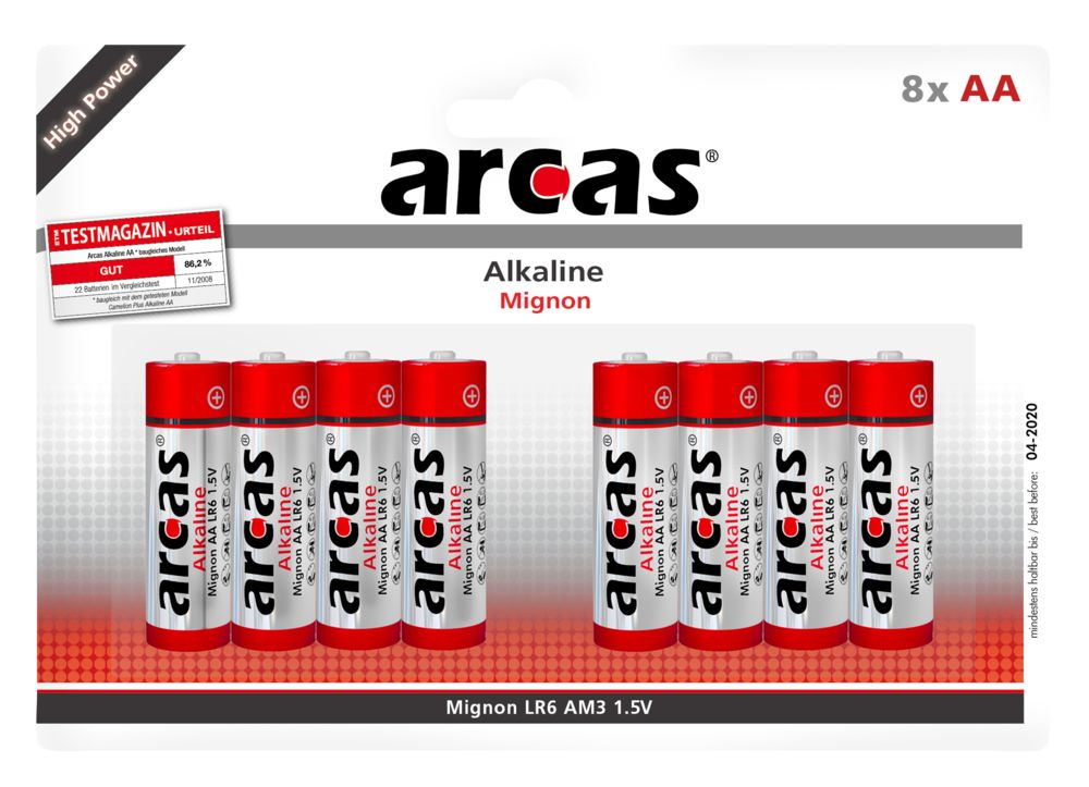 Mignon battery alkaline 1.5V, type AA/LR6, pack of 8