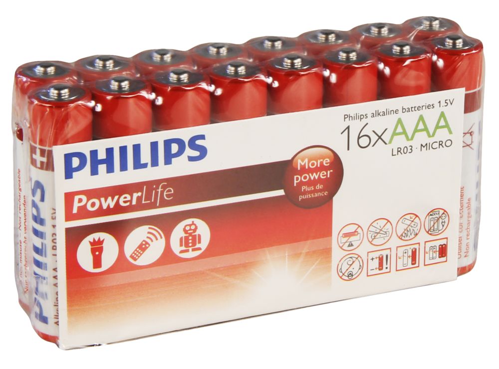 PHILIPS micro battery, alkaline 1.5 V, type AAA/LR03, pack of 16