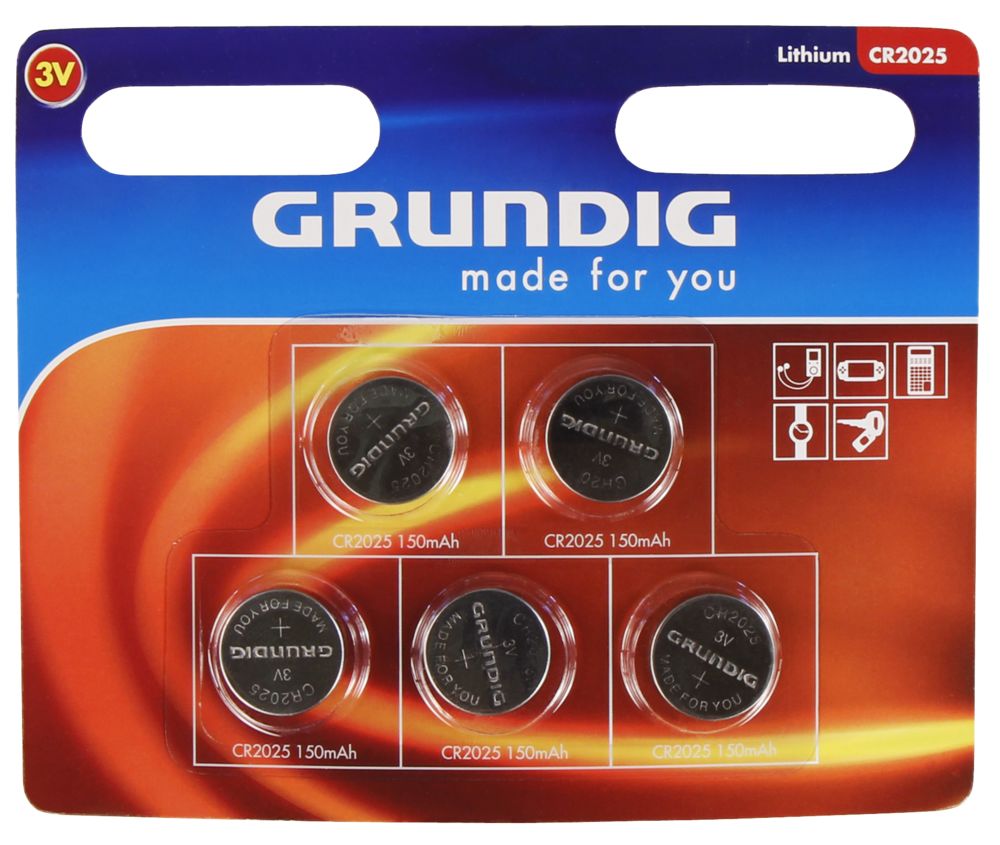 Button cell GRUNDIG CR2025, 3.0V, lithium, blister of 5