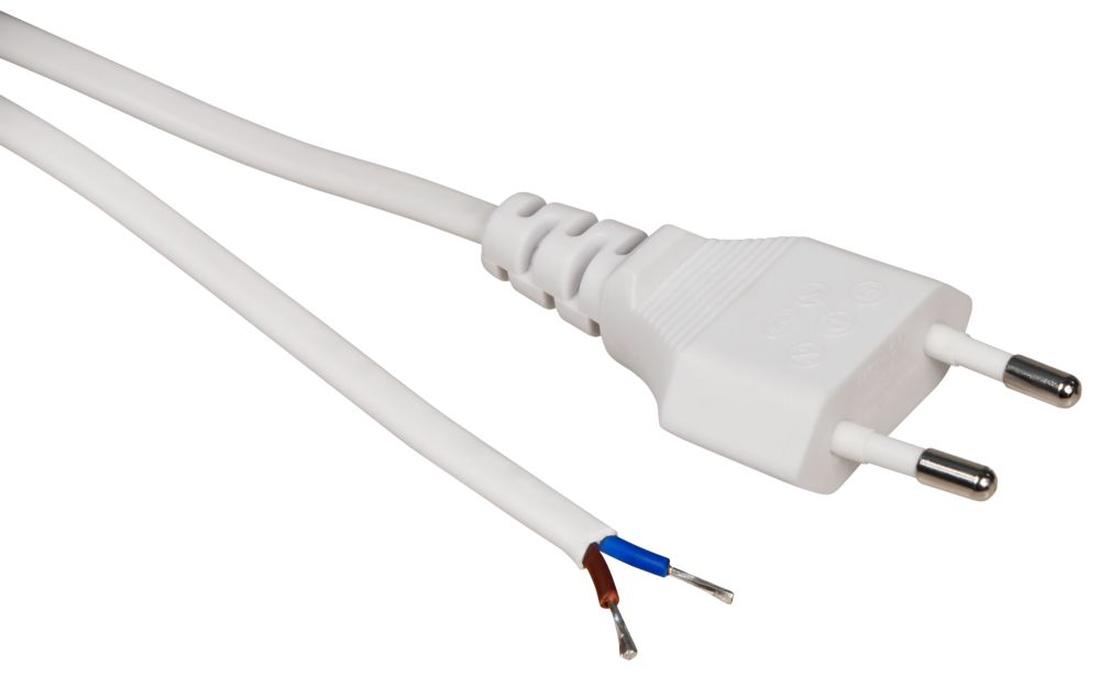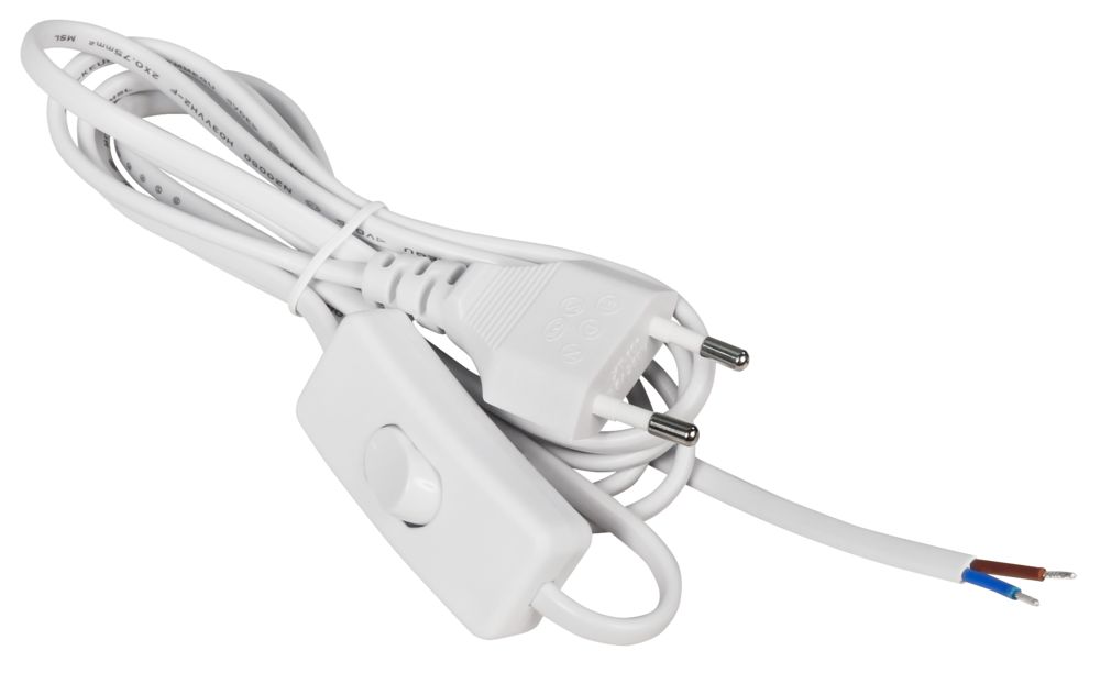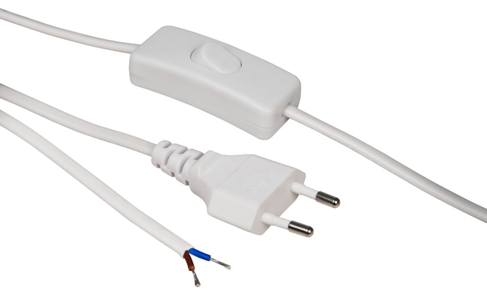 Euro power cable McPower with cord switch and bare ends, 2m, white