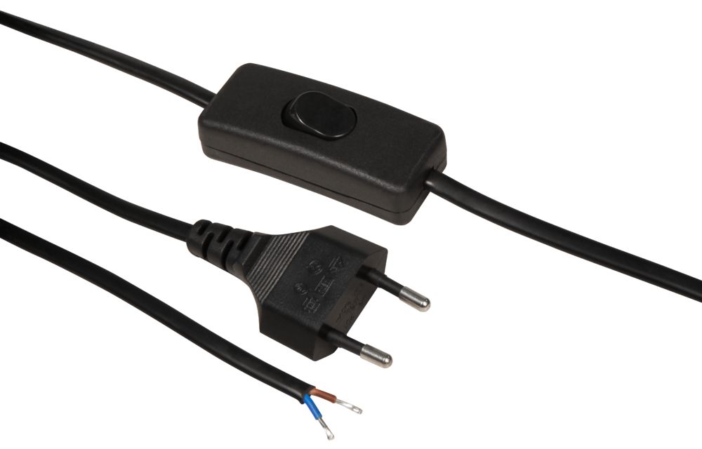 Euro power cable McPower with cord switch and bare ends, 2m, black