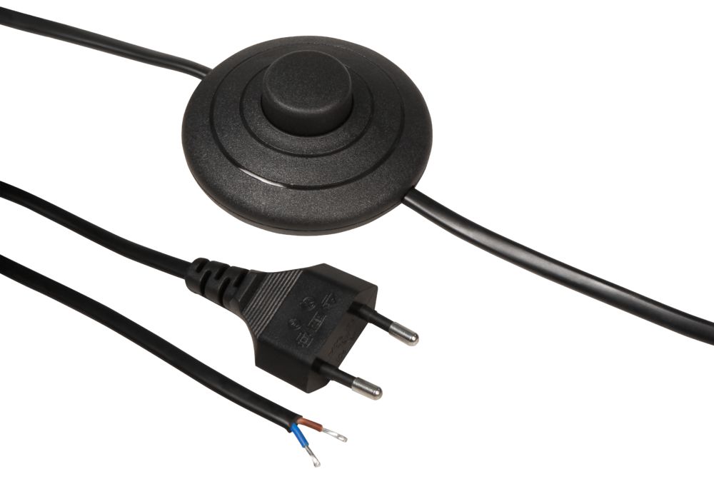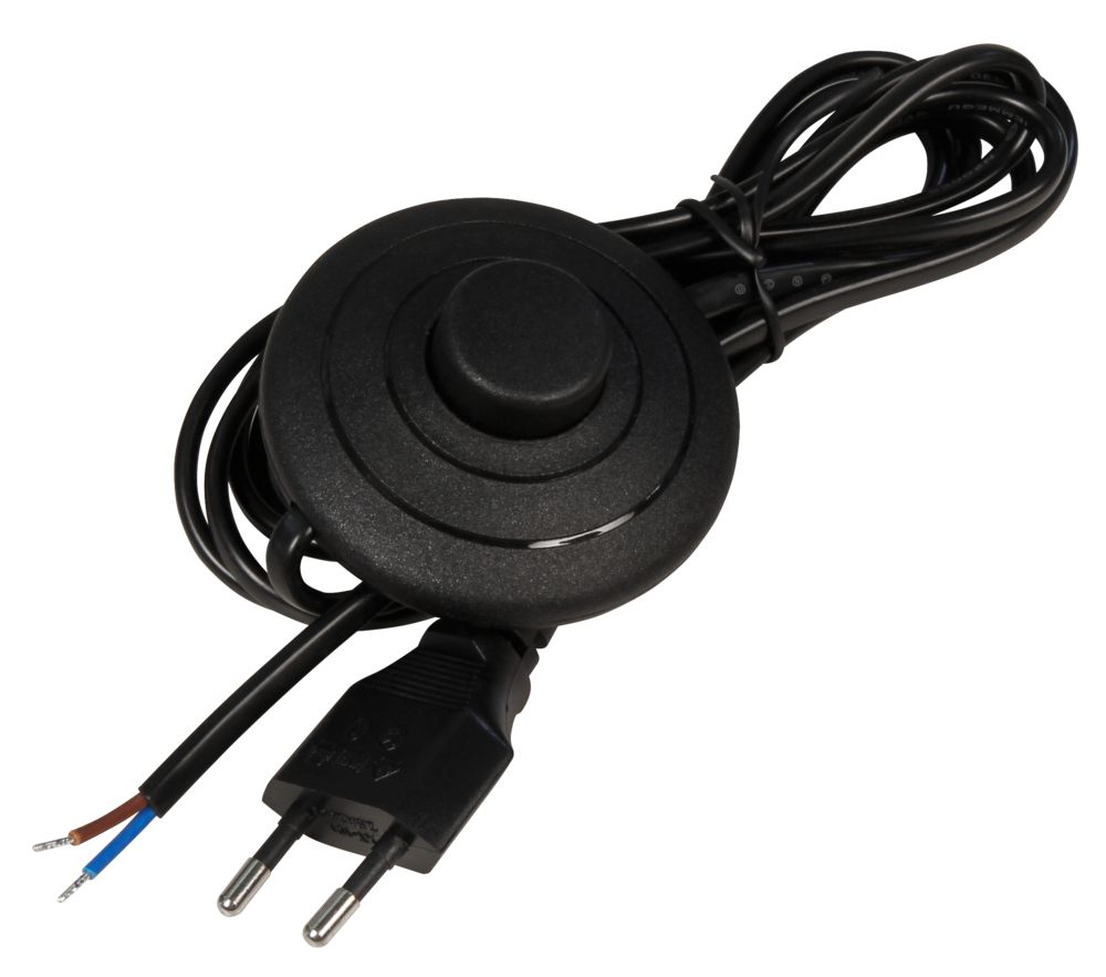 Euro power cable McPower with foot switch and bare ends, 2m, black