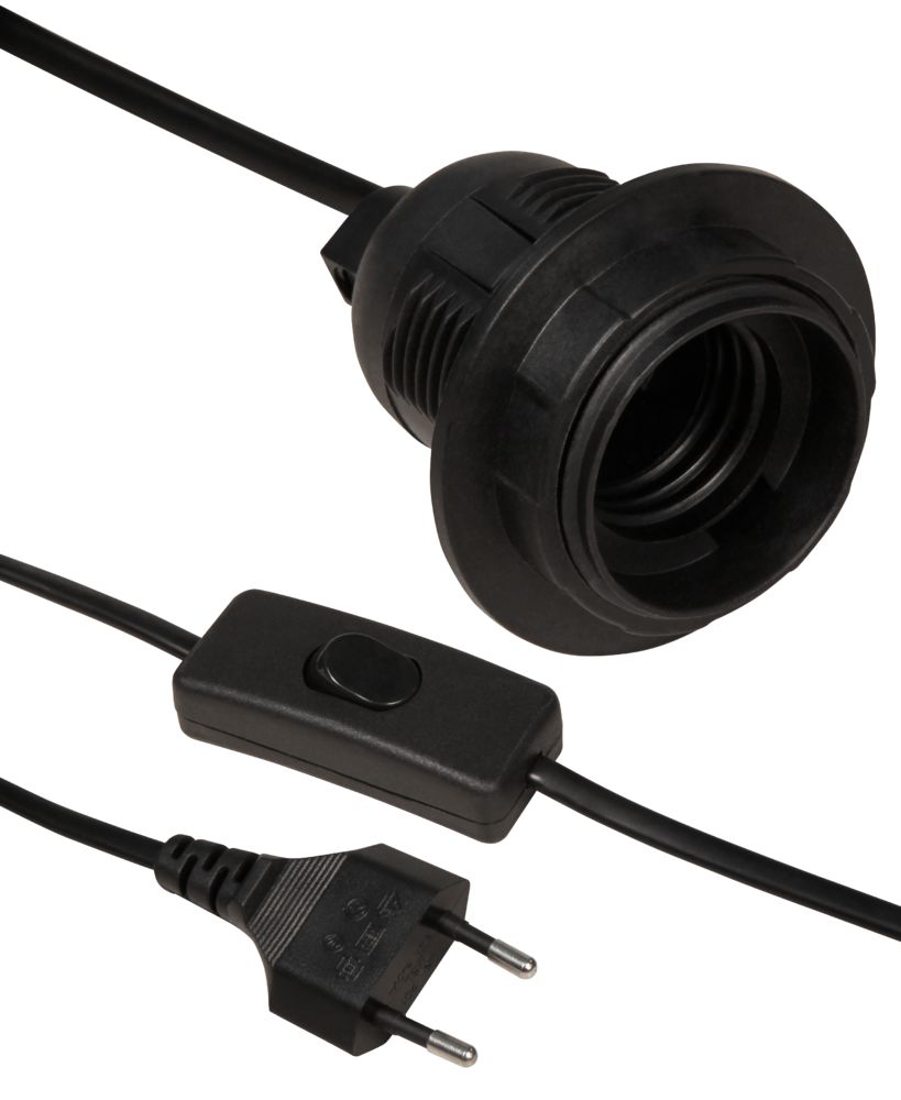 Euro power cable McPower with cord switch and E27 socket, 3.5m, black