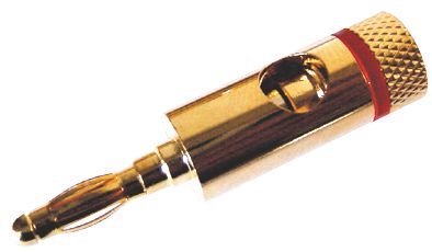 Laboratory plug, 4mm-Ø, gold-plated, with red identification ring