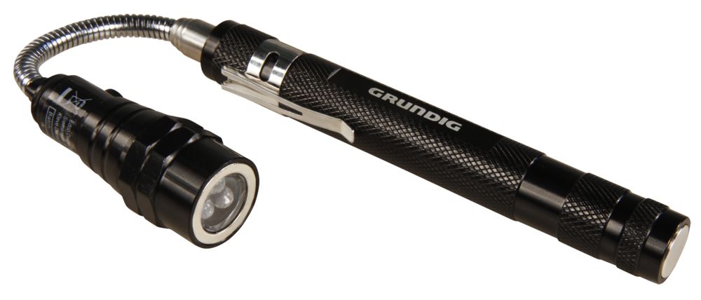 LED flashlight GRUNDIG, 3 LEDs, telescopic arm and magnet, aluminum