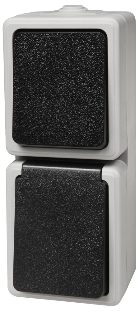 The article Moist room combination socket McPower ''Taff'', 250V~, switch+socket, IP44, AP, gray is currently in stock